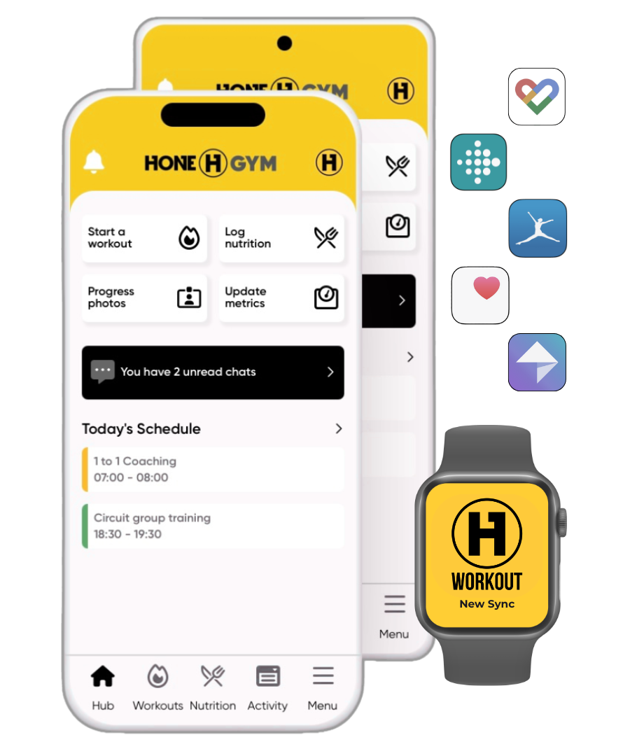 and personal training. Whether you’re at home, in the gym, or on the go — HoneGym is built
